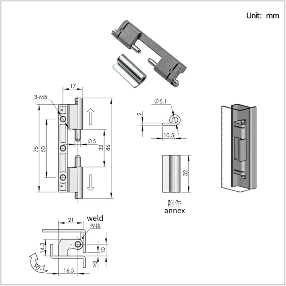 Zinc Alloy Double Nail Detachable Door Concealed Welding Hinge 1Pcs