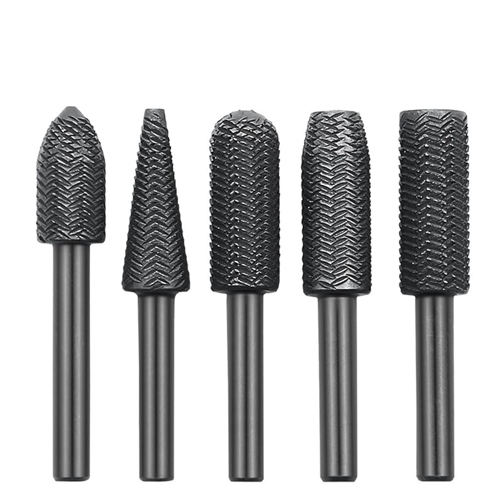 5pcs Rotary Steel File Wood Drill Bits Burrs Metal Grinding Grooved Sanding Engraving Milling Polish Tool 6mm Shank