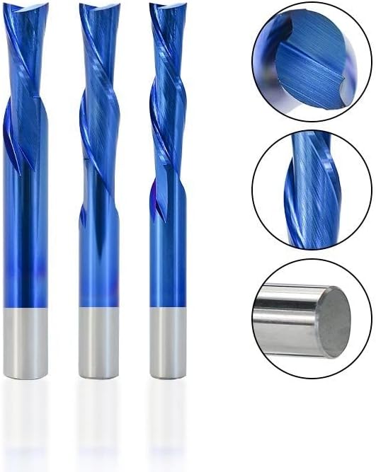 لقم توجيه حلزوني 2 قاطع فلوت 3.175-12 مم عرقوب اليد اليسرى للأسفل قاطع كربيد لولبي نهاية مطحنة حتى أسفل لقمة ضغط لنحت الخشب
