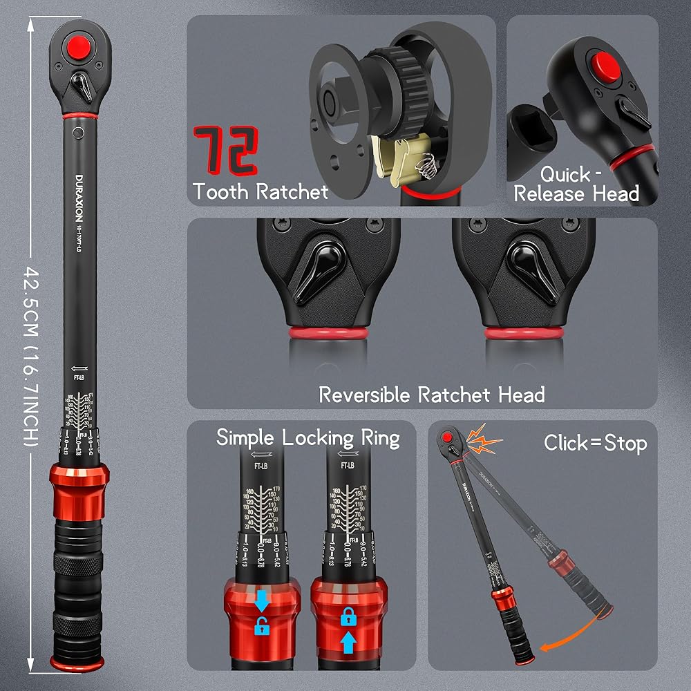 • 【سهل القراءة وسهل الاستخدام】يتميز مفتاح عزم الدوران هذا مقاس 1/2 بوصة بمقاييس جريئة منقوشة بالليزر لسهولة القراءة. يسمح التصميم المزدوج بقراءة قيم عزم الدوران في وحدتين دون تحويل. يتيح رأس السقاطة ثنائي الاتجاه ذو 72 سن التشغيل السلس في اتجاه عقارب الساعة وعكس اتجاه عقارب الساعة، في حين أن حلقة القفل القابلة للتعديل تجعل تعديلات عزم الدوران مضبوطة مسبقًا دون عناء.