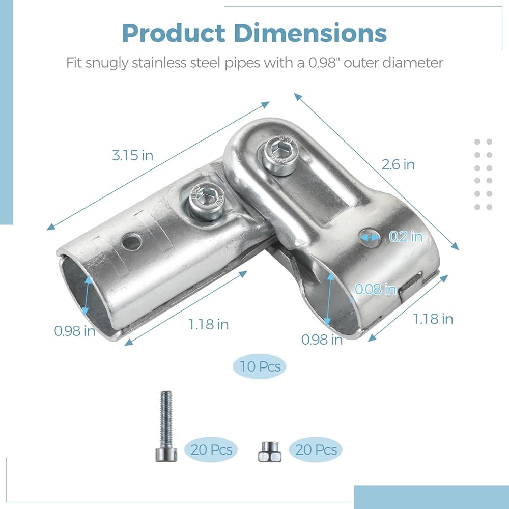 10 قطع من تركيبات الأنابيب المحملة، موصلات أنابيب قابلة للتعديل في اتجاهين، مشابك سياج أنبوبية بمنفذ T، تجهيزات أنابيب معيارية مع مسامير وصواميل ومفتاح ربط، تناسب أنابيب الفولاذ المقاوم للصدأ OD 0.98 بوصة