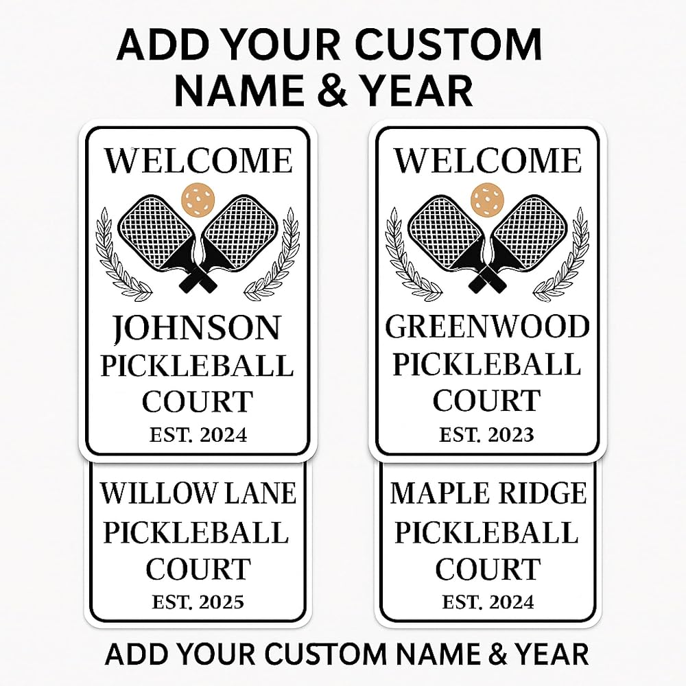Personalized Design – Add your custom name and establishment year for a unique pickleball court welcome si