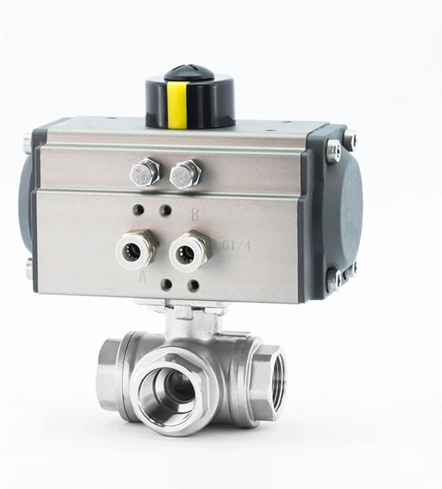 • 3/4" three-piece high platform stainless steel internal thread pneumatic three-way ball valve T-type L-type ball valve