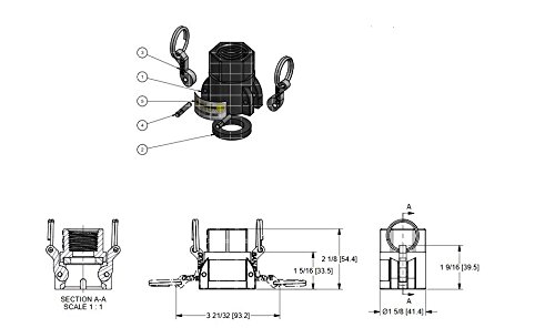 Cam and Groove Coupling, Socket, Body Material Polypropylene, Type D, Coupling Size 3/4 in, Female, Connection Type NPT, Hose Fitting Size 3/4 in, FNPT, Max. Working Pressure @ 70 F 300 psi, Socket Inside Diameter 1 19/64 in, Gasket Material EPDM, Overall Length 2 1/8 in, Includes Locking Arm No, Thread Size 3/4 in -14