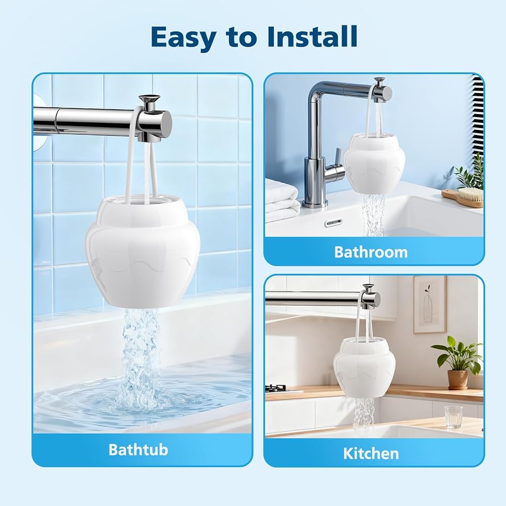 【يعزز صحة البشرة والشعر والأظافر】: من خلال تنظيف المواد الكيميائية القاسية والشوائب التي تجرد الزيوت الطبيعية، فإن الماء المصفى يكون ألطف على جسمك. استمتع بحمامات تجعل بشرتك أكثر نعومة وأقل حكة مع فلتر الحمام هذا، وشعرك أكثر لمعانًا وسهل التصفيف، وأظافرك أقوى.