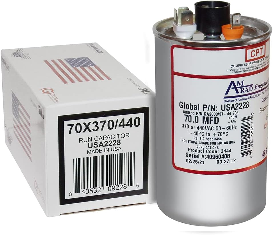 AMRAD ENGINEERING USA2228 مكثف تشغيل المحرك الدائري الأمريكي الصنع، 70 Mfd، 370/440 Vac-132335