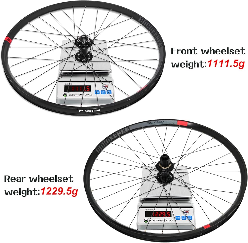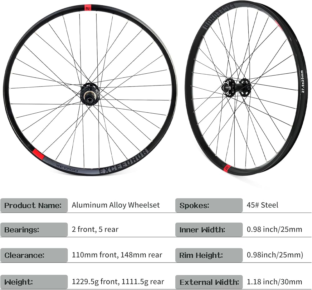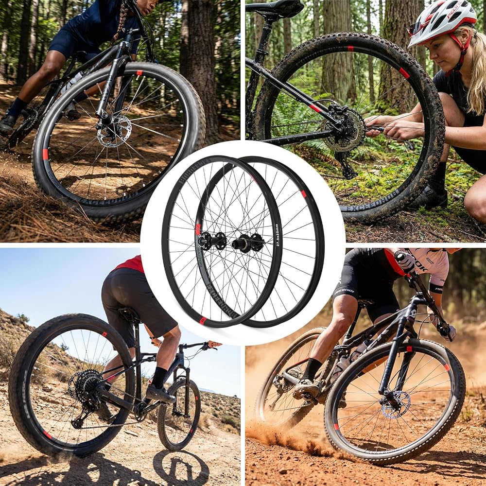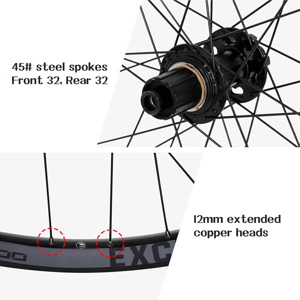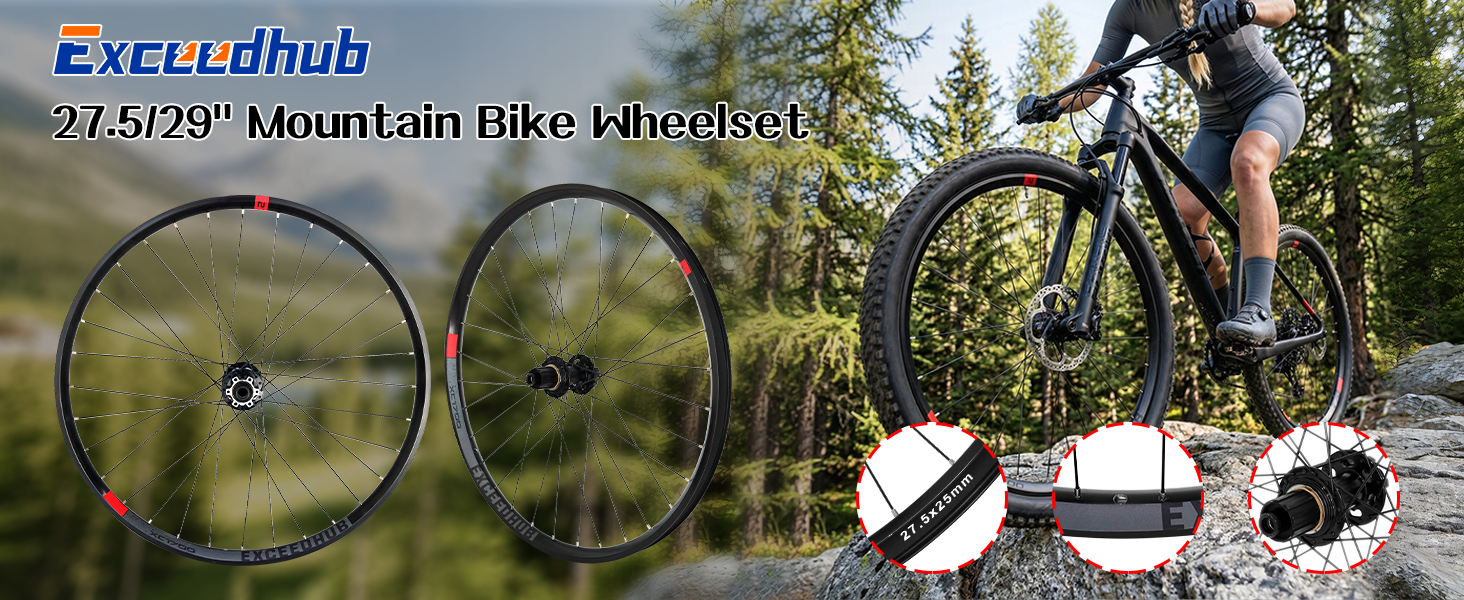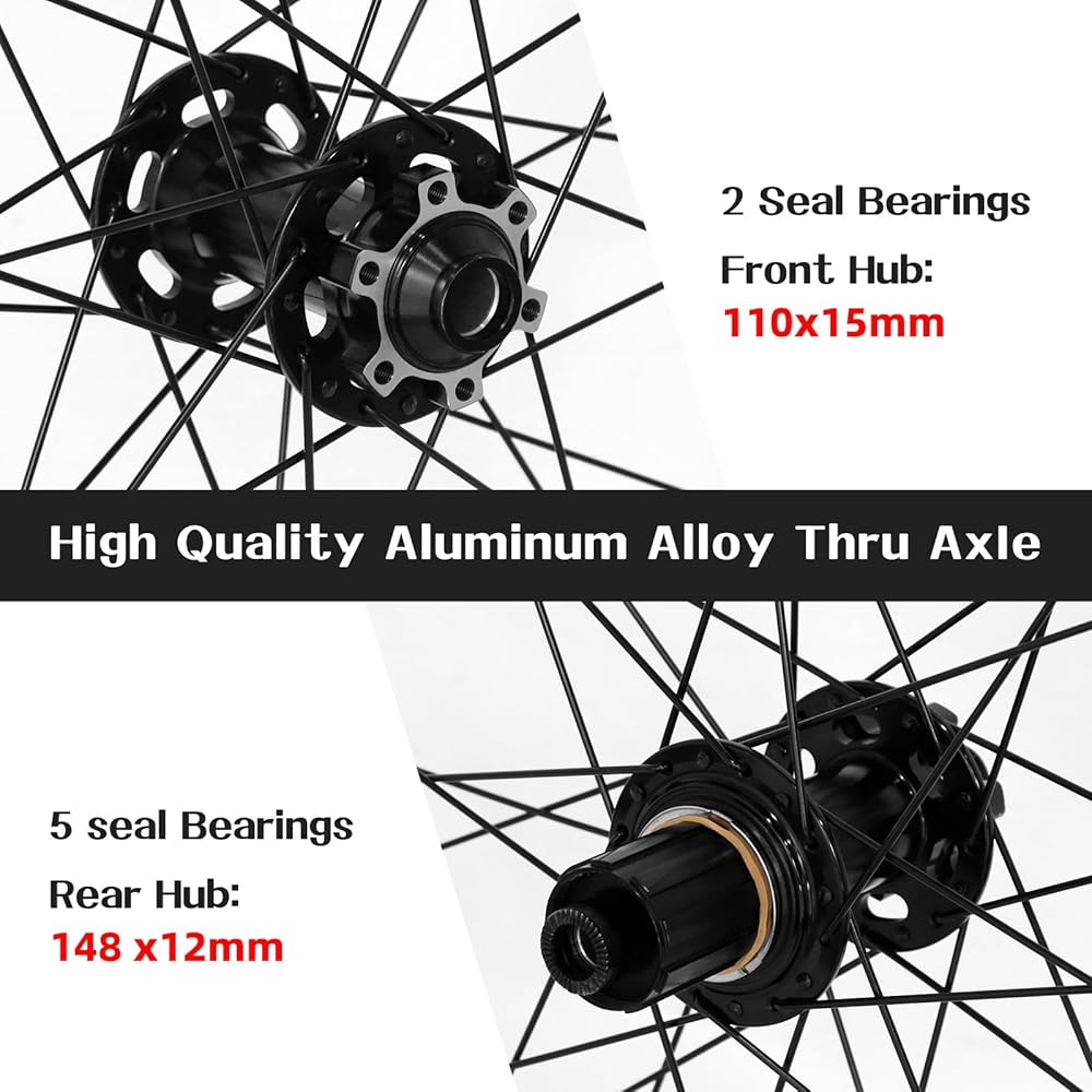 【متوافقة】مجموعة عجلات MTB تناسب كاسيت السرعة 8/9/10/11، إطارات بمقاس 1.8~3.0، سهلة التجميع. يتميز الجزء الداخلي بتصميم حافة مزدوجة الجدار لاستيعاب أكبر القفزات والسقوط