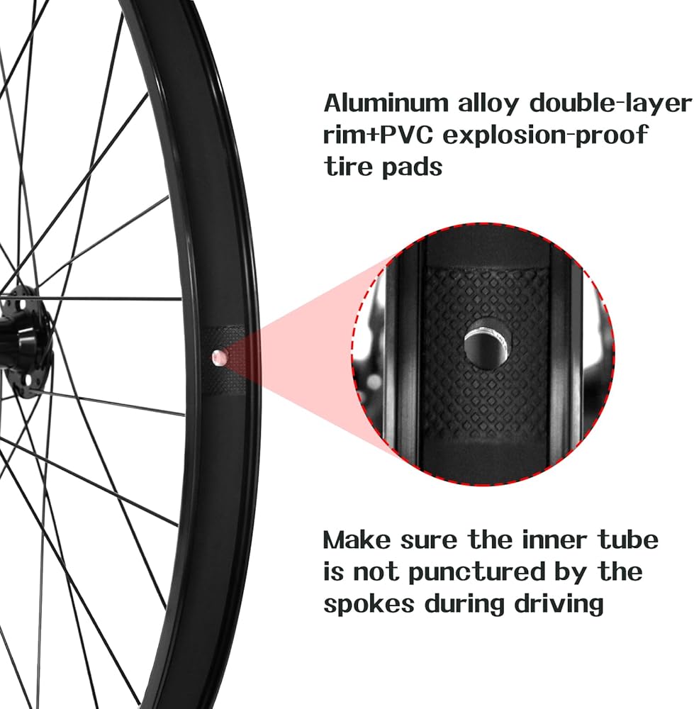 【حماية الأنبوب الداخلي】تم تجهيز حافة الدراجة ذات الطبقة المزدوجة المصنوعة من سبائك الألومنيوم بوسادات إطارات مقاومة للانفجار من مادة PVC، تأكد من عدم ثقب الأنبوب الداخلي بواسطة المتحدث أثناء القيادة. ثق في مجموعة عجلات MTB الخاصة بنا لمغامرة ركوب الدراجات بدون قلق