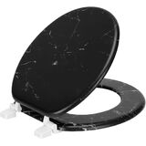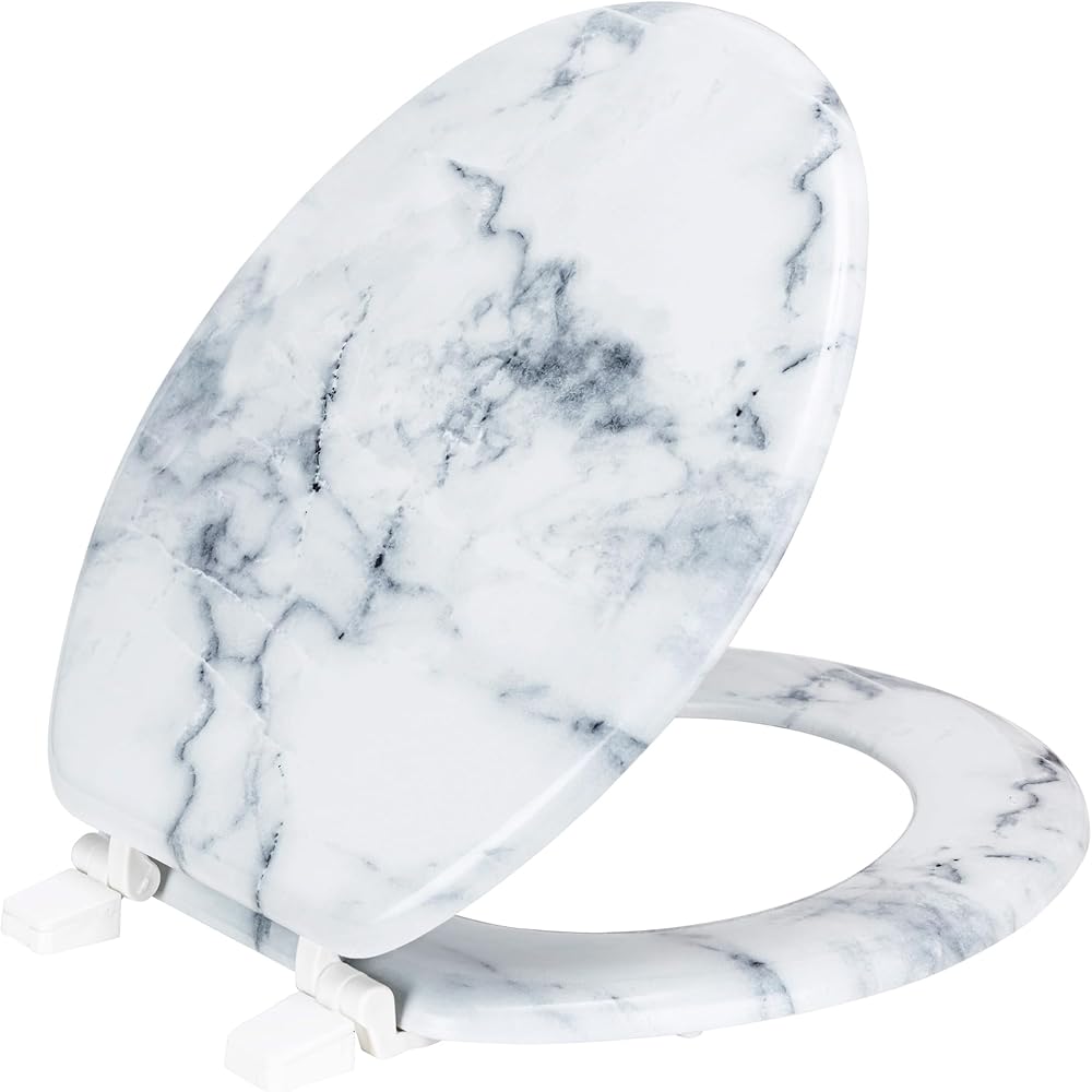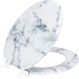 Transform your bathroom into a luxurious oasis with the PREMIUS Wood Toilet Seat. This stylish seat features a stunning printed marble design, adding a touch of elegance to any space. Crafted from durable MDF wood and equipped with sturdy plastic hinges, this seat is built to last. The standard round size ensures a perfect fit for most toilets.