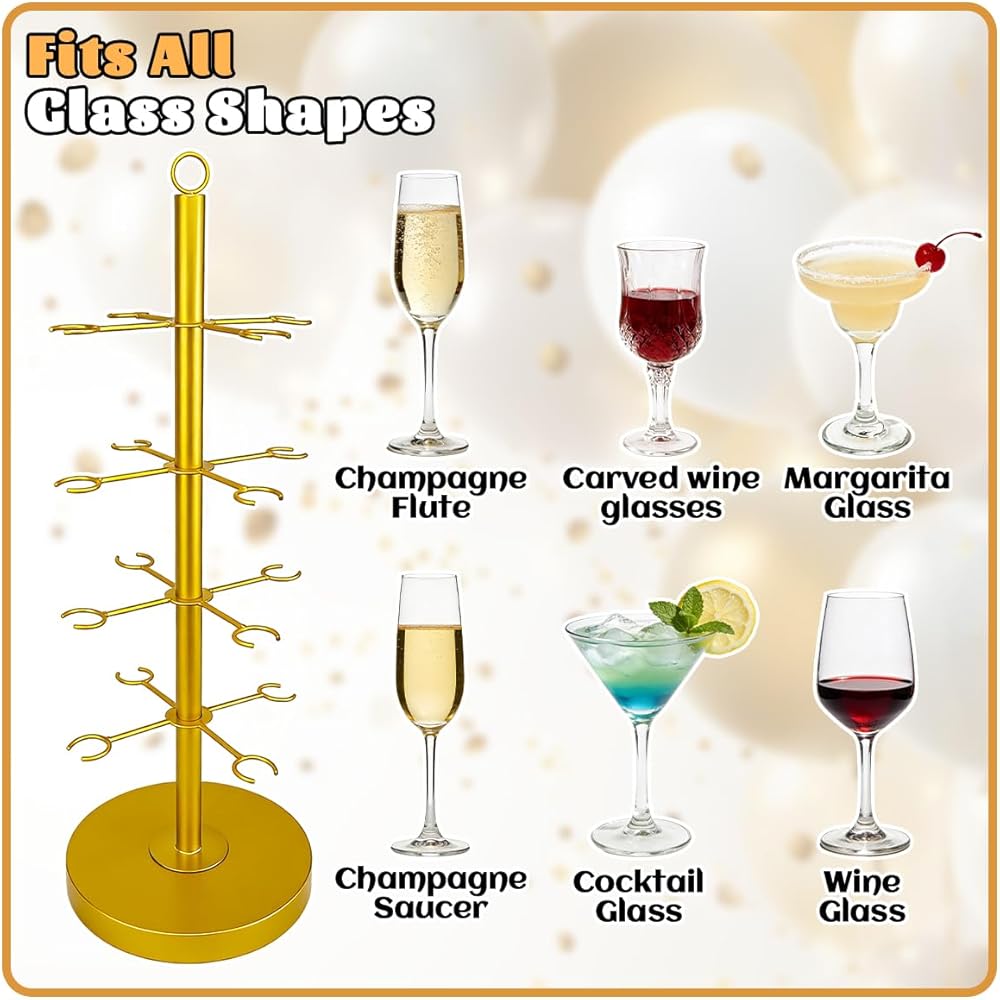 Dual Purpose Usage: The champagne holder functions as a glass display stand during parties, showcasing drinks elegantly. After the event, you can flip cleaned champagne glasses upside down and hang them on the champagne tree tower enabling natural drying while keeping the glasses free from dust.