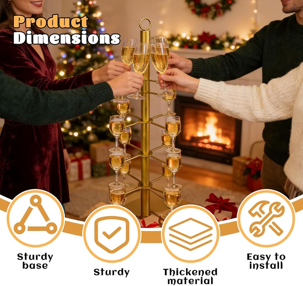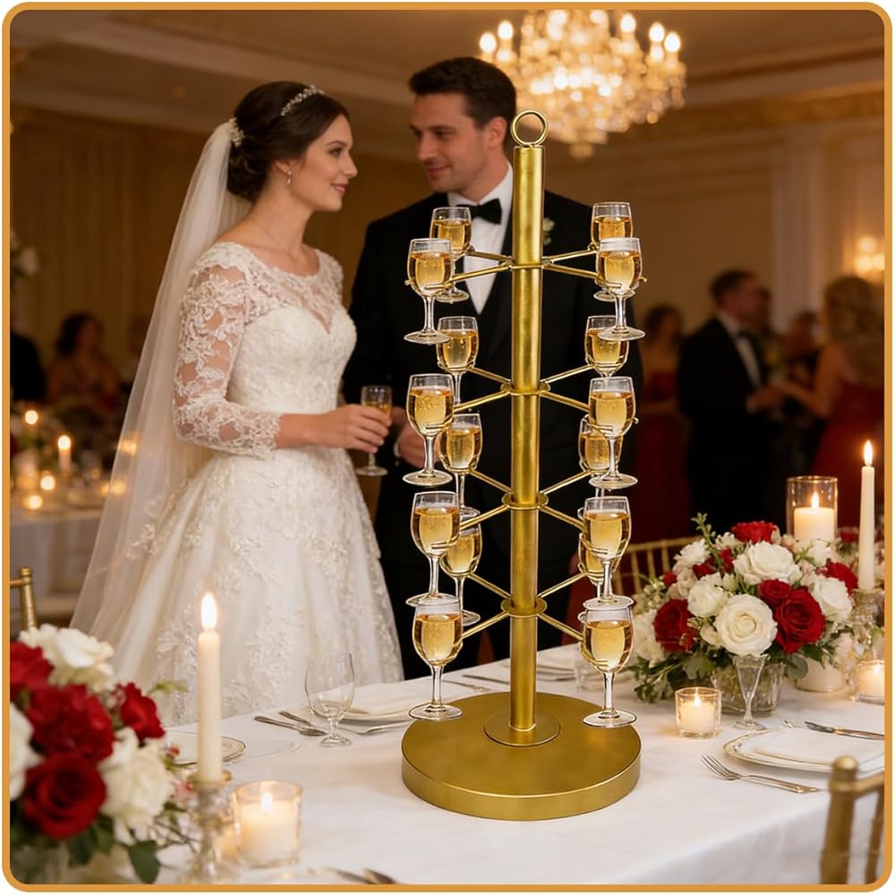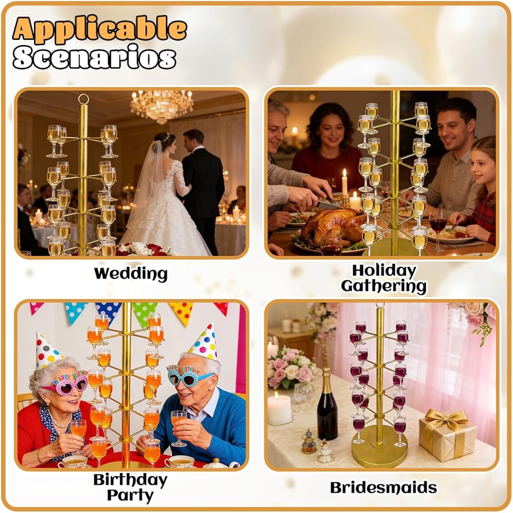 Versatile for Various Occasions: This eye catching golden champagne tower adds a stunning visual appeal and convenient drink display for your guests. It's perfect for weddings, birthday parties, holiday dinners, family feasts, and business events elevating the ambiance of any gathering.