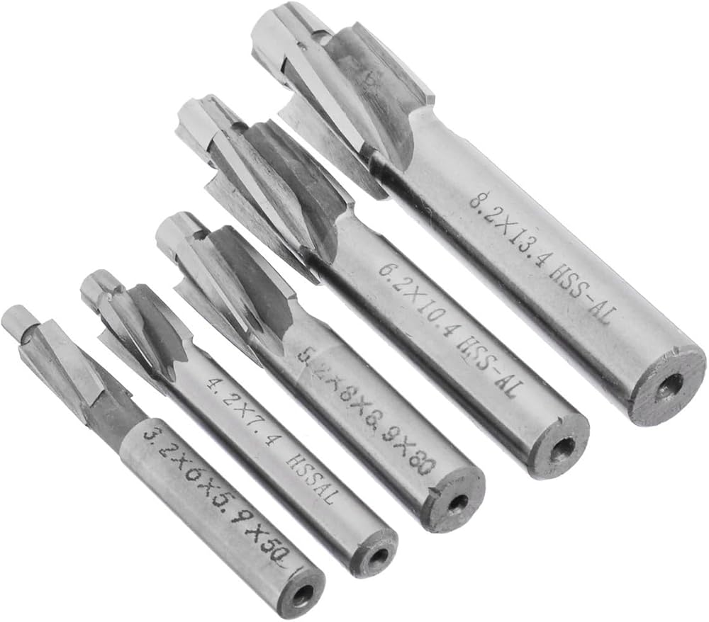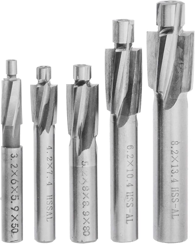 5Pcs M3-M8 Counterbore Milling Cutter Material: HSS-ALSuitable For: Machining of low carbon steel and non ferrous materialsPackage Included:5 x End Mill Cutter