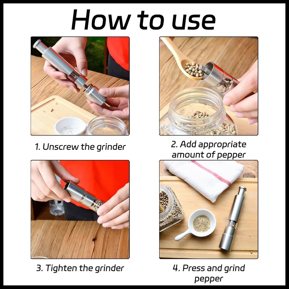 One-Handed Operation: The Salt And Pepper Grinder Features A User-Friendly One-Touch Pump Button, While Our Carefully Designed Grinding Rod Ensures Efficient Grinding. Simply Press The Button On Top, And Our Grinder Will Do The Rest!