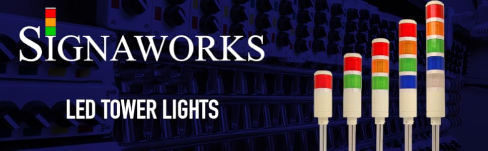 Signaworks LED 3 Stack Tower Light 120 VAC، ثابت ووامض، أحمر/كهرماني/أخضر - مصباح برج أندون، عمود ملولب 10 بوصة، صواميل ودعامة زاوية قائمة فقط - (لا يتضمن سلك طاقة أو أدوات تحكم)