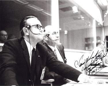 Christopher Kraft is an American aerospace engineer and retired NASA engineer and manager who was instrumental in establishing the agencys Mission Control operation Assigned to the flight operations division Kraft became NASAs first flight director He was on duty during such historic missions as Americas first manned spaceflight first manned orbital flight and first spacewalk Christopher Kraft has hand signed this 8 x 10 Photo with Director of Flight Operations 19641970 inscription JSA Hologram EE62144 and Certificate of Authenticity Specifications. Photo Size 8 x 10