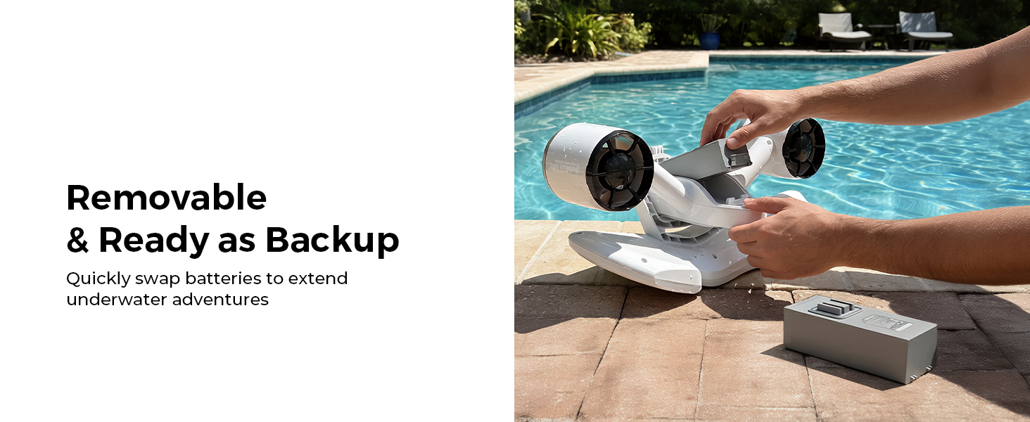 أداء وأمان موثوقان: مصمم بقدرة 122 وات 11.1 فولت و11000 مللي أمبير في الساعة لتوفير طاقة ثابتة ومتسقة لمغامرات السكوتر تحت الماء.