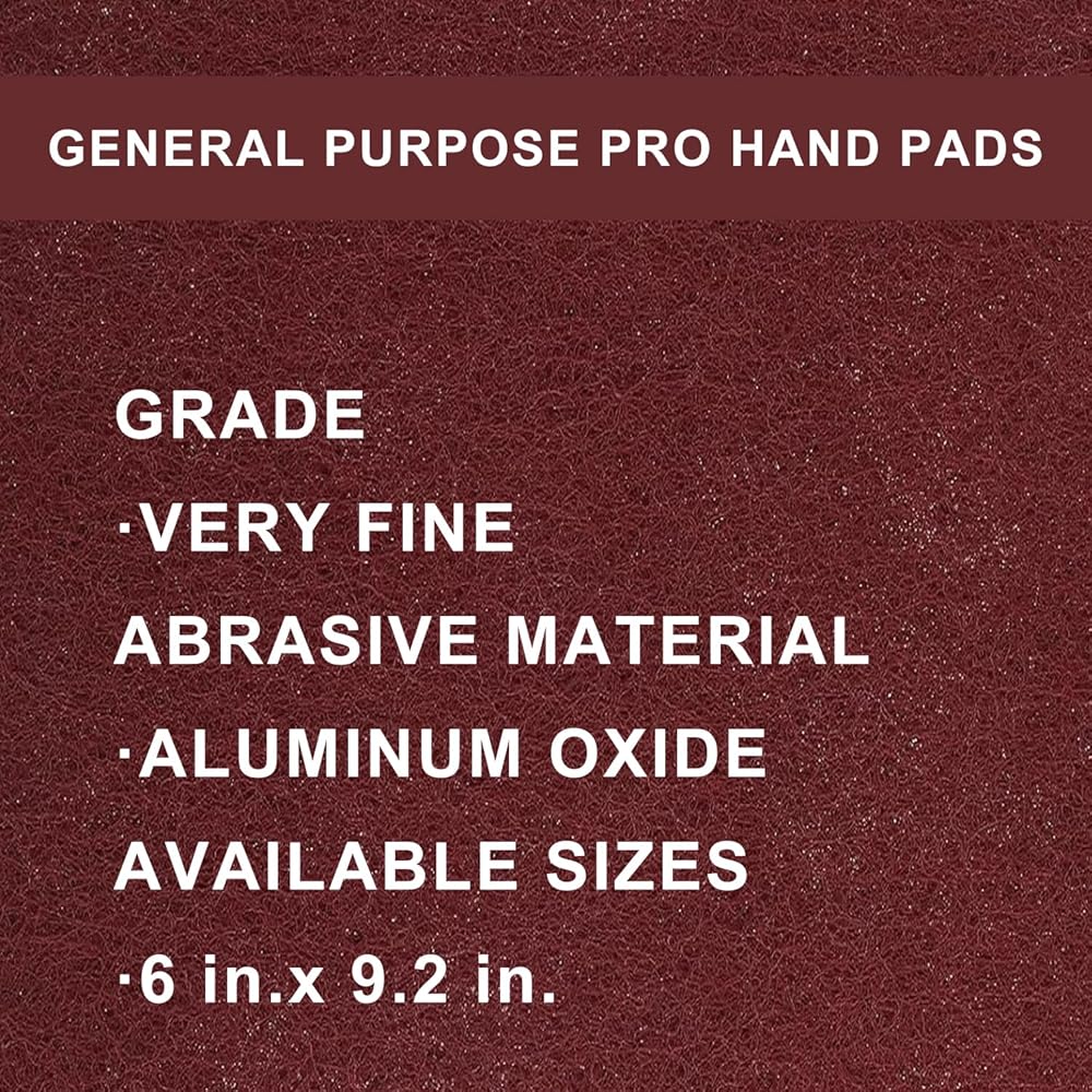 Transform your surface preparation and cleaning tasks with these professional-grade hand pads from HYDRO MASTER. These versatile maroon abrasive pads are perfect for scuffing, cleaning, and preparing surfaces for finishing. The non-woven synthetic fiber construction provides consistent performance and durability across a wide range of applications. Whether you're working on wood, metal, or other surfaces, these pads deliver reliable results without being too aggressive. The flexible material conforms to contours and irregular shapes, making them ideal for both flat and curved surfaces. These general-purpose pads are excellent for between-coat sanding, surface preparation, and general cleaning tasks. The convenient hand-sized format allows for precise control and easy handling during use. Keep a stack of these professional pads in your workshop or toolbox for all your surface preparation needs.