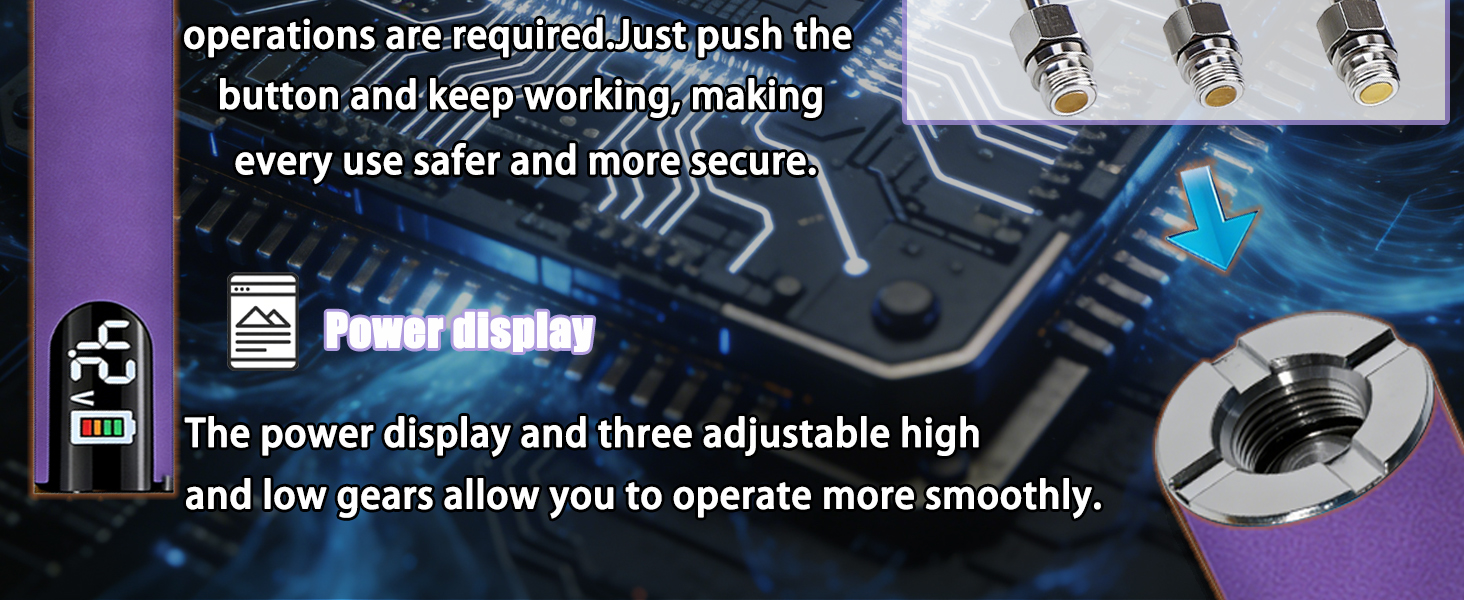 6. شاشة LED للمراقبة في الوقت الفعلي ابق على اطلاع بدقة من خلال شاشة LED واضحة تعرض قراءات درجة الحرارة المباشرة وحالة البطارية. اضبط الإعدادات بثقة وحافظ على التحكم المثالي في الحرارة للإلكترونيات الحساسة، مما يضمن دقة لحام احترافية دون تخمين.