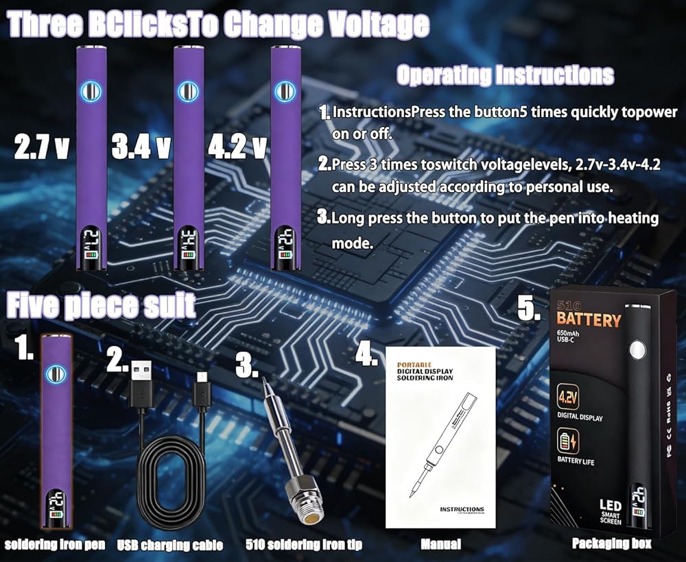 2. ترقية تسخين دقيق ذكي على 3 مراحل إلى تحكم فائق من خلال نظام الوضع المتقدم ثلاثي درجات الحرارة (2.7 فولت/3.7 فولت/4.2 فولت)، المصمم هندسيًا لقدرة على التكيف لا مثيل لها. يحقق قلب التسخين الخزفي عالي الأداء درجات حرارة لحام مثالية (تصل إلى 450 درجة فهرنهايت) في أقل من 8 ثوانٍ، مما يقلل وقت الانتظار بشكل كبير. سواء كنت تقوم بتنفيذ إصلاحات إلكترونية دقيقة أو لحام بلاستيكي عالي التحمل، استمتع بمستويات حرارة مخصصة للحصول على نتائج خالية من العيوب وخالية من الأضرار في كل مرة.