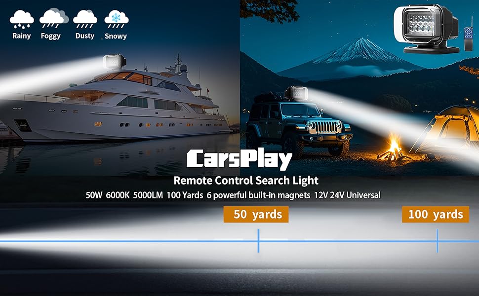 【أضواء كاشفة للطرق البحرية والطرق الوعرة】مصممة بغطاء ABS مقاوم للماء، يمكن أن يعمل ضوء البحث في المطر والثلج مع مقاومة جيدة للماء. يساعد الغلاف المصنوع من الألومنيوم بالداخل على تبديد الحرارة المنبعثة من مصابيح LED بسرعة