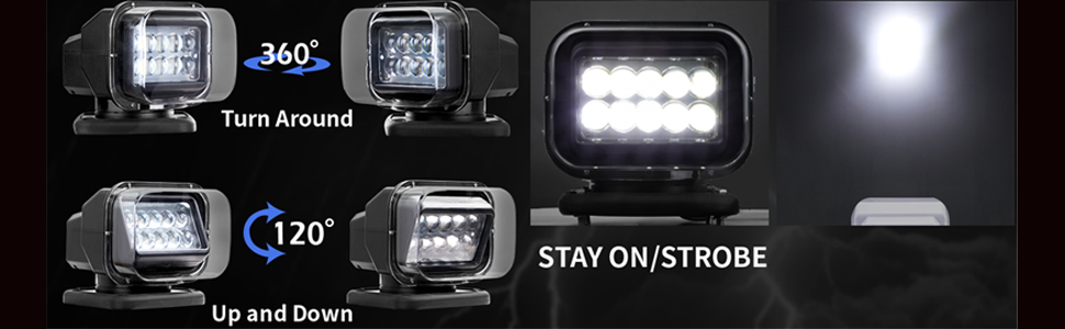 【كشاف LED للتحكم عن بعد】مع جهاز التحكم عن بعد الذي يأتي مع كشاف البحث، يمكنك التحكم في ضوء البحث لأعلى ولأسفل أو بشكل بيطري 360 درجة بسهولة.