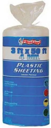 3' x 50', 4 mil, clear, polyethylene sheeting, consumer roll. Highly durable product. Manufactured in china.