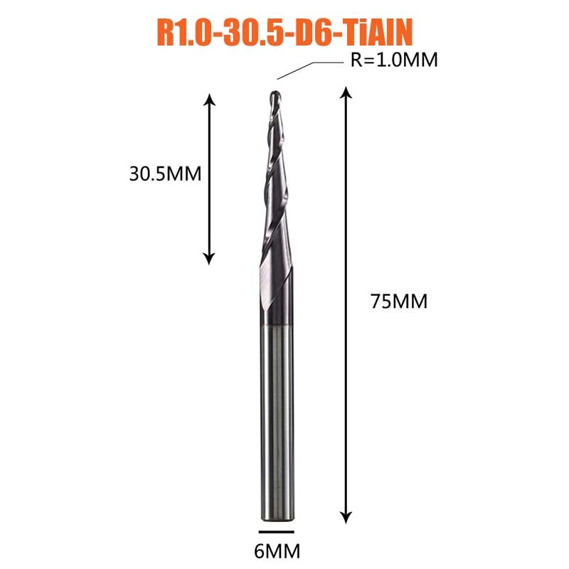 1 قطعة 6 مللي متر عرقوب مدبب الكرة الأنف نهاية مطحنة R0.25-R2 دوامة CNC راوتر بت 2-الناي الصلبة كربيد قاطعة المطحنة للنقش ثنائي الأبعاد وثلاثي الأبعاد (R1.0-30.5-D6)