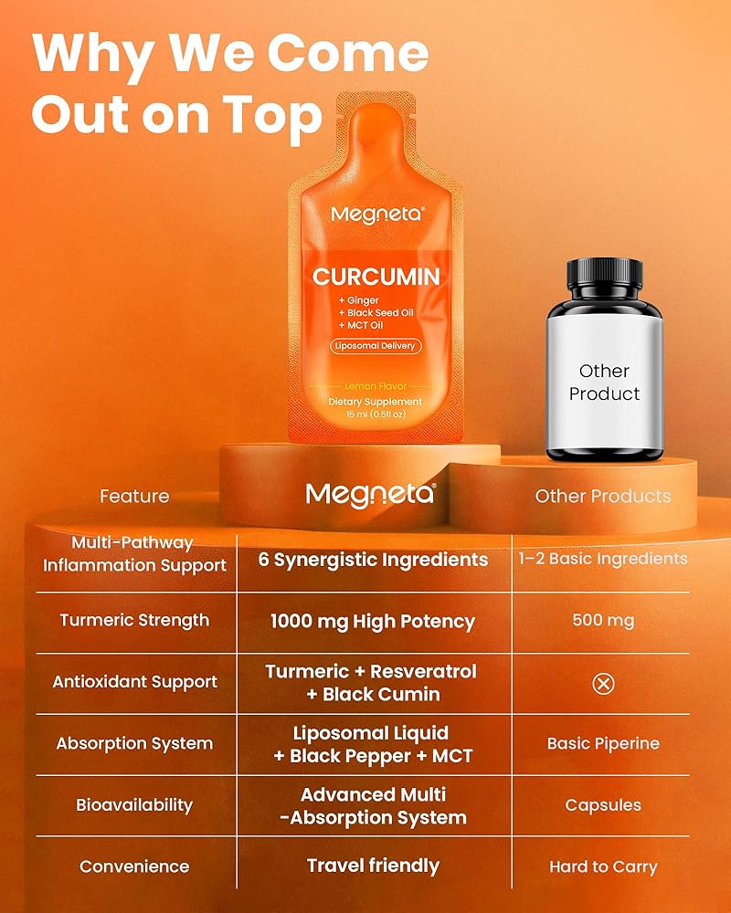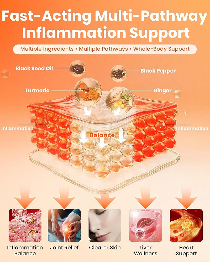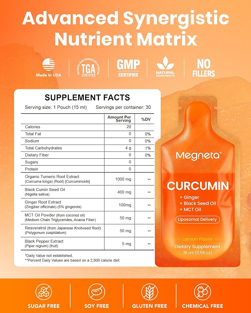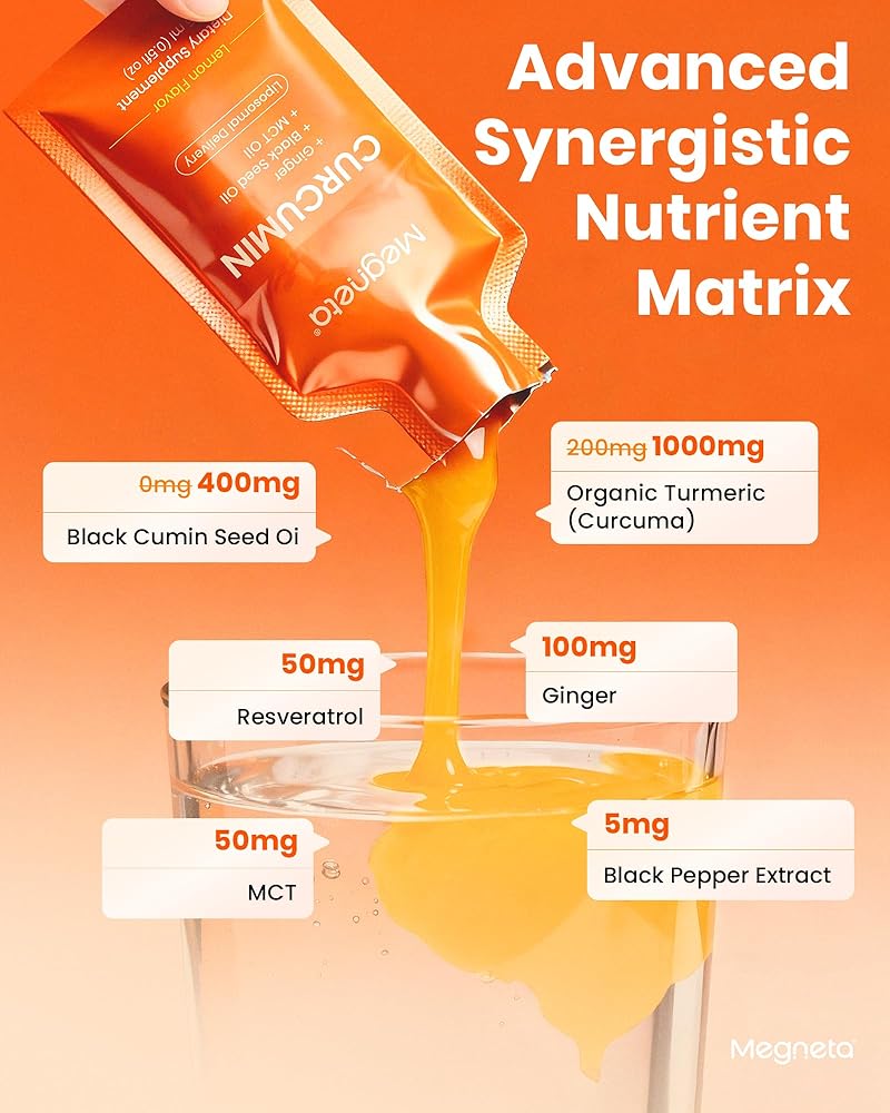 [نظام الكركم الشحمي فائق القوة]: جرعة يومية قوية تحتوي على 1000 مجم من الكركمين الدهني، جنبًا إلى جنب مع زيت الحبة السوداء والزنجبيل والريسفيراترول وزيت MCT - تدعم توازن الالتهاب متعدد المسارات، وراحة المفاصل، ومرونة العضلات، وعافية الجسم بالكامل.