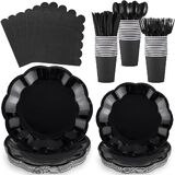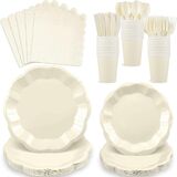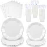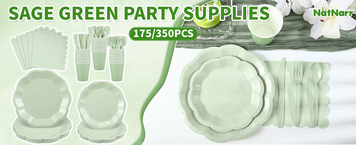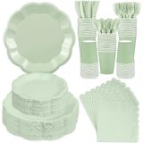 【يخدم 25 ضيفًا】سوف تحصل على أطباق خضراء مقاس 25 × 9 بوصة، وأطباق خضراء مقاس 25 × 7 بوصة، و25 × كوبًا ورقيًا، و25 × منشفة ورقية، و25 × سكاكين، و25 × شوكة، و25 × ملاعق، ومجموعات متعددة الكمية يمكن أن تلبي احتياجات حفلتك وتخدم العديد من الضيوف.