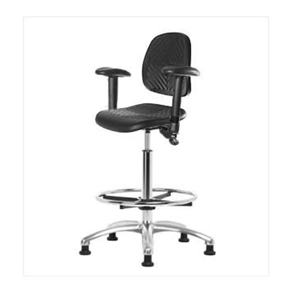 Thomas ECOM PHBCH-MB-CR-T1-A1-CF-RG كرسي مرتفع من مادة البولي يوريثين مع قاعدة من الكروم مع إمالة، ظهر متوسط، ذراع قابل للتعديل، ينزلق