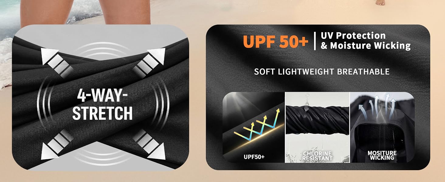 حماية من أشعة الشمس بعامل حماية من أشعة الشمس 50+ وجفاف سريع: تتميز هذه السراويل القصيرة للسيدات للسباحة بحماية من أشعة الشمس بعامل حماية من أشعة الشمس 50+، وتحجب 98% من الأشعة فوق البنفسجية الضارة لحماية بشرتك أثناء الأنشطة الخارجية. يجف النسيج خفيف الوزن والممتص للرطوبة بسهولة، مما يبقيك بعيدًا عن الالتصاق - ويبقى منتعشًا وباردًا طوال اليوم سواء كنت في الماء أو على الشاطئ.