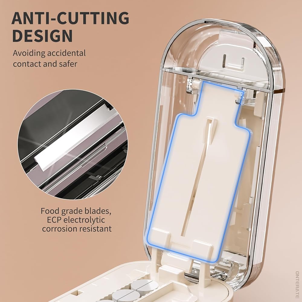 【تصميم حجب الشفرة】: مقسم حبوب الدواء للعديد من الحبوب يتميز بتصميم هيكل حجب الشفرة، الشفرة مخفية ومعزولة تمامًا في حالة عدم التشغيل، مما يمنع الاتصال العرضي بالشفرة الحادة عند وضع الأجهزة اللوحية أو ضبط الوضع. آمنة وموثوقة، تحافظ على أصابعك بشكل فعال لتجنب الخدوش أو اللمسات العرضية.