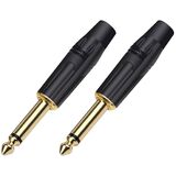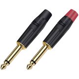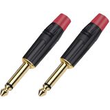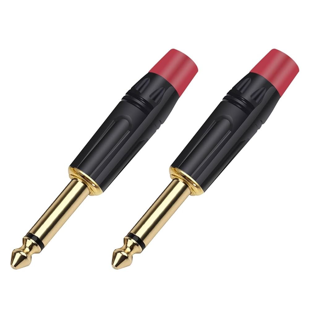 2 قطعة 6.35 مللي متر مقابس 6.3 مللي متر أحادية ذكر موصل قابس النحاس 1/4 بوصة ميكروفون موصل قابس (1xBlack 1xRed) in Kuwait