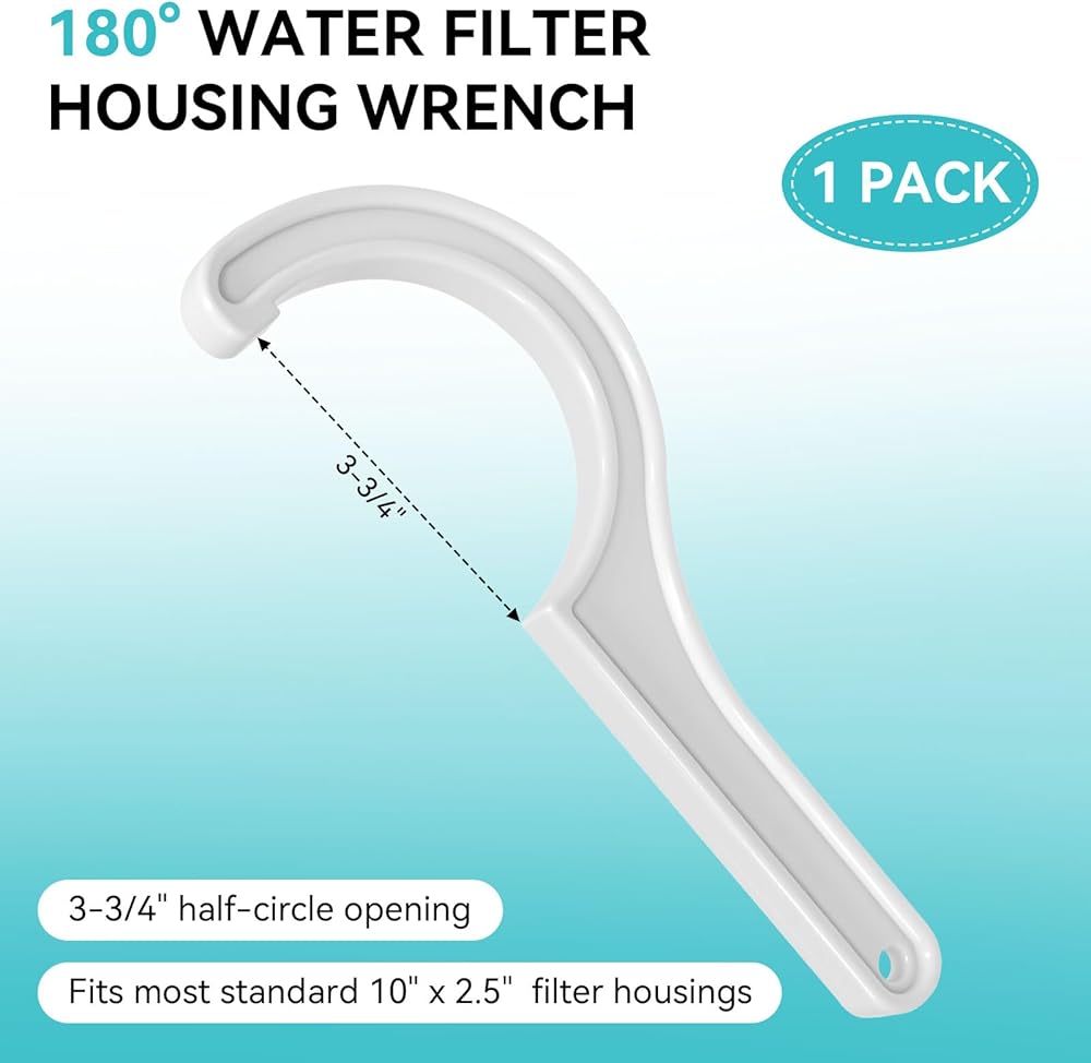 Universal Compatibility – The water filter housing wrench compatible with APEC water filter systems but also fits most standard 10" x 2.5" filter housings, 3-3/4" half-circle opening, perfect for RO systems and under-sink water filters, use to twist off the water flter housingsumps