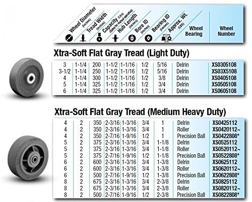 عجلة Albion XS0305108 مقاس 3 بوصات من المطاط الناعم X-tra، مداس مسطح واسع بدون علامات مقاس 1-1/4 بوصة، محمل Delrin من قطعتين، سعة 200 رطل