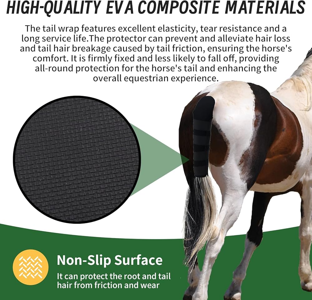 • Reliable quality: Made of high-quality EVA composite material, the tail wrapping has excellent elasticity, tear resistance, and long service life; It is securely fixed and not easy to slip off, providing all-round protection for the horse's tail