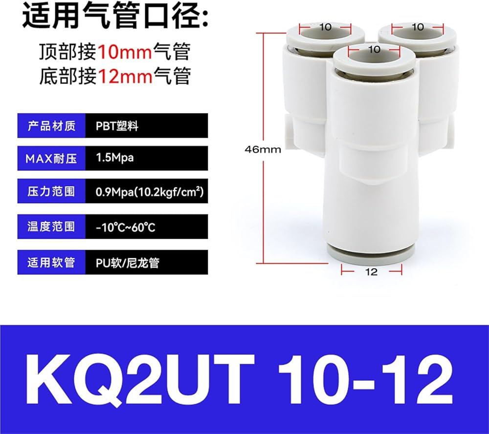 موصل هوائي بخمسة اتجاهات على شكل Y KQ2UD04-06 القصبة الهوائية سريع بقطر متغير PRG08-10 رباعي الاتجاهات 1 قطعة (四通KQ2UT10-12)