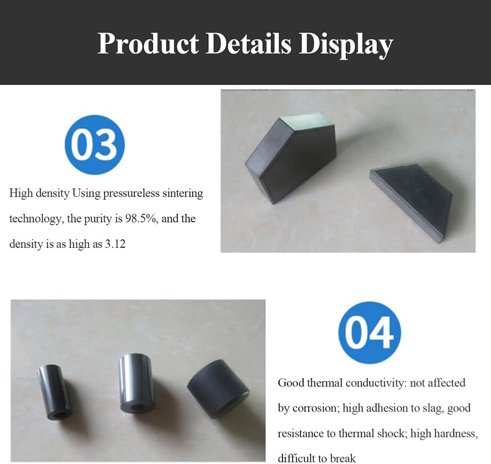 Silicon carbide ceramic sheet is sintered with high purity silicon carbide material, which has excellent hardness and wear resistance, smooth surface, and can be operated stably for a long period of time under harsh conditions. They also have good thermal conductivity, electrical insulation and very low coefficient of thermal expansion. Whether you are researching and developing, assembling industrial equipment or replacing old parts, this product will be your ideal choice.