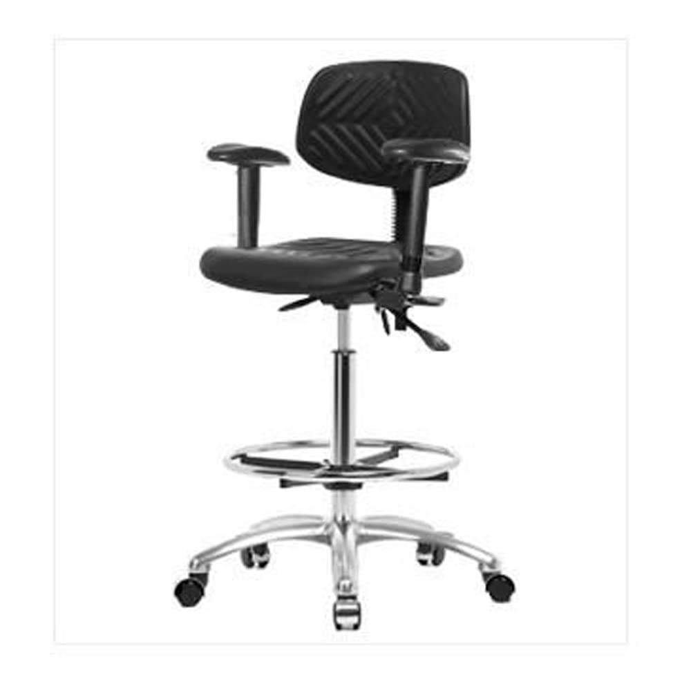 Thomas ECOM PHBCH-CR-T1-A1-CF-CC كرسي مرتفع من مادة البولي يوريثين مع قاعدة وإمالة من الكروم، ذراع قابل للتعديل، حلقة قدم من الكروم، عجلات من الكروم