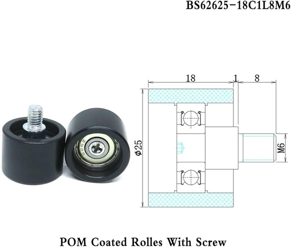2 قطع 25 مللي متر قطر بوم محمل العجلة بكرة مع M6 برغي BS62625-18C1L8M6 25 مللي متر OD ملفوفة النايلون خيط خارجي خط الأسطوانة