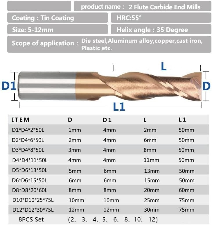 1 قطعة/8 قطعة نانو معطف شقة الأنف نهاية مطحنة CNC راوتر بت 1-12 مللي متر اثنين من المزامير كربيد نهاية مطحنة TiCN المغلفة شقة نهاية مطحنة بت ماكينة بتحكم رقمي بالكمبيوتر طحن بت