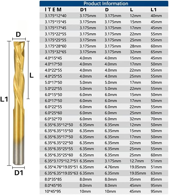 • Shank: 3.175mm(1/8'') 4mm 5mm 6mm 8mm 10mm