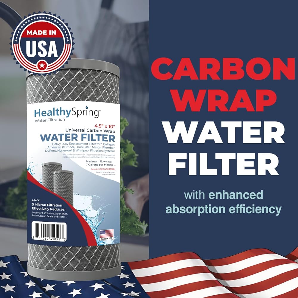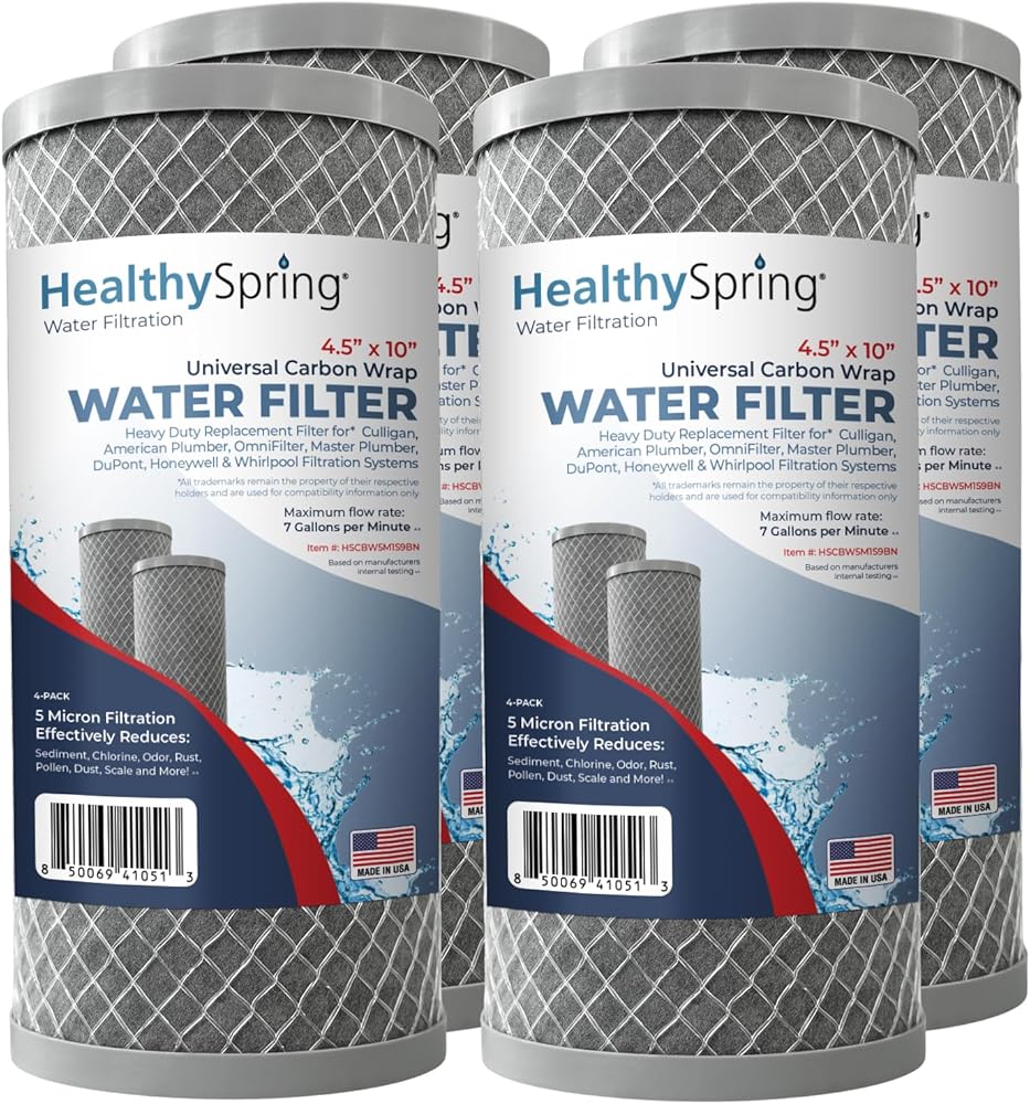 Healthy Spring High Performance 5 Microns Whole House Sediment Activated Carbon Water Filter Compatible with Dupont WFHDC8001,EP Series,EPM Series, NCP-BB-10, GE FXHTC, GXWH40L, GXWH35F, GNWH38S, CTO10BB,Made in USA, 4PACK