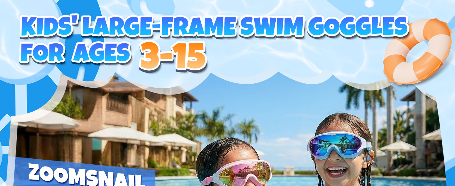ZOOMSNAIL children's swimming goggles are equipped with an anti-ultraviolet coating, shatter-resistant lenses, quick-release design, and earplugs. They are the perfect choice for children's water activities in summer.