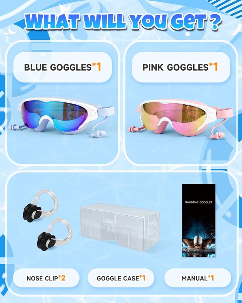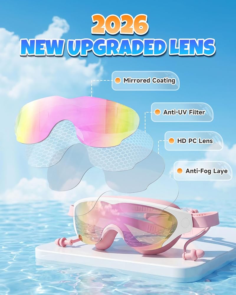 【ANTI-FOG COATING】The interior lenses are coated with an advanced anti-fog treatment that minimizes blurring and condensation. This ensures clear vision underwater, enhances safety, and helps avoid distractions during swim training or fun water games.