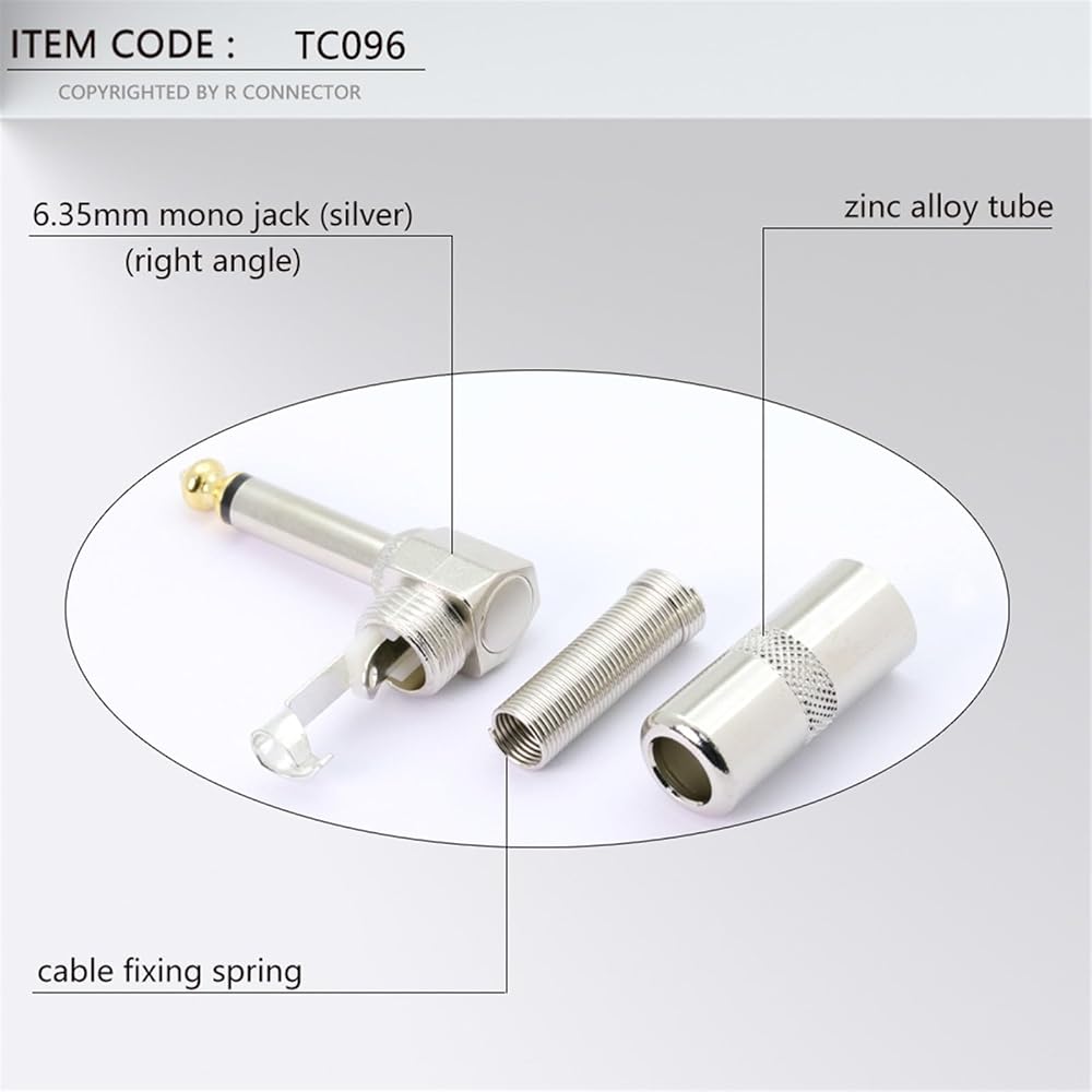 6.35MM Male Mono Plug Connector 6.3MM Jack Plug for Electric Pedal 1/4" Right Angle Plugs 6 Corners with Spring