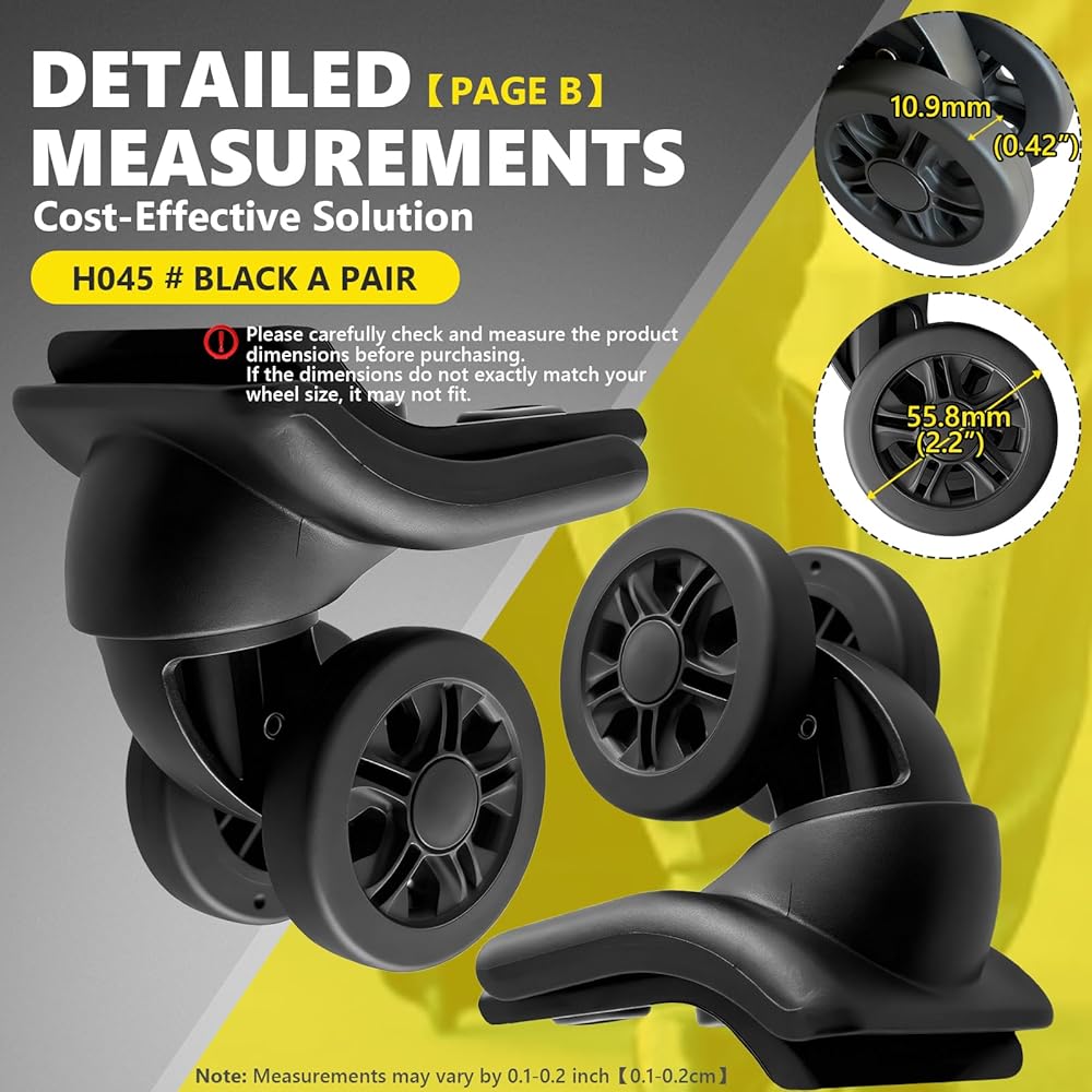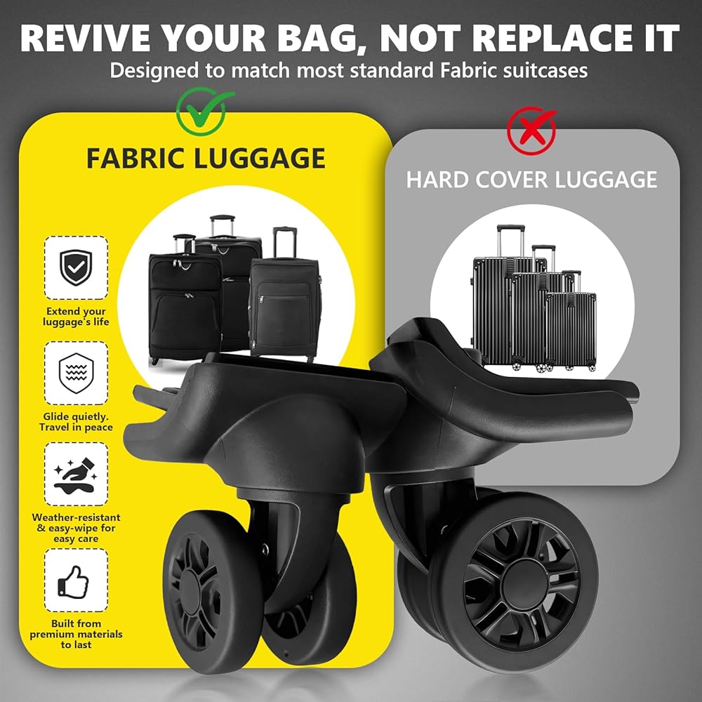 【خيار فعال من حيث التكلفة ومستدام】لا تقم بإلقاء حقيبة جيدة على عجلات مكسورة! تعتبر مجموعة الاستبدال هذه ذات الأسعار المعقولة خيارًا ذكيًا. فهو يطيل عمر أمتعتك على الفور، مما يوفر بديلاً عمليًا لشراء حقيبة جديدة.