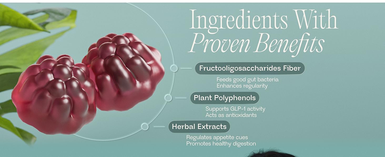 منشط طبيعي GLP-1 للتحكم في الشهية - ادعم هرمونات الشبع الطبيعية في جسمك من خلال علكات الألياف المدعومة علميًا. تجمع كل حصة بين مسحوق فاكهة الكيوي (600 ملغ) والرمان والفراولة ومستخلص الزنجبيل وFOS البريبايوتيك لتحفيز نشاط GLP-1 بشكل طبيعي، مما يساعدك على الشعور بالشبع لفترة أطول وتقليل الرغبة الشديدة ودعم عادات الأكل الواعية بدون منشطات أو مكونات صناعية.