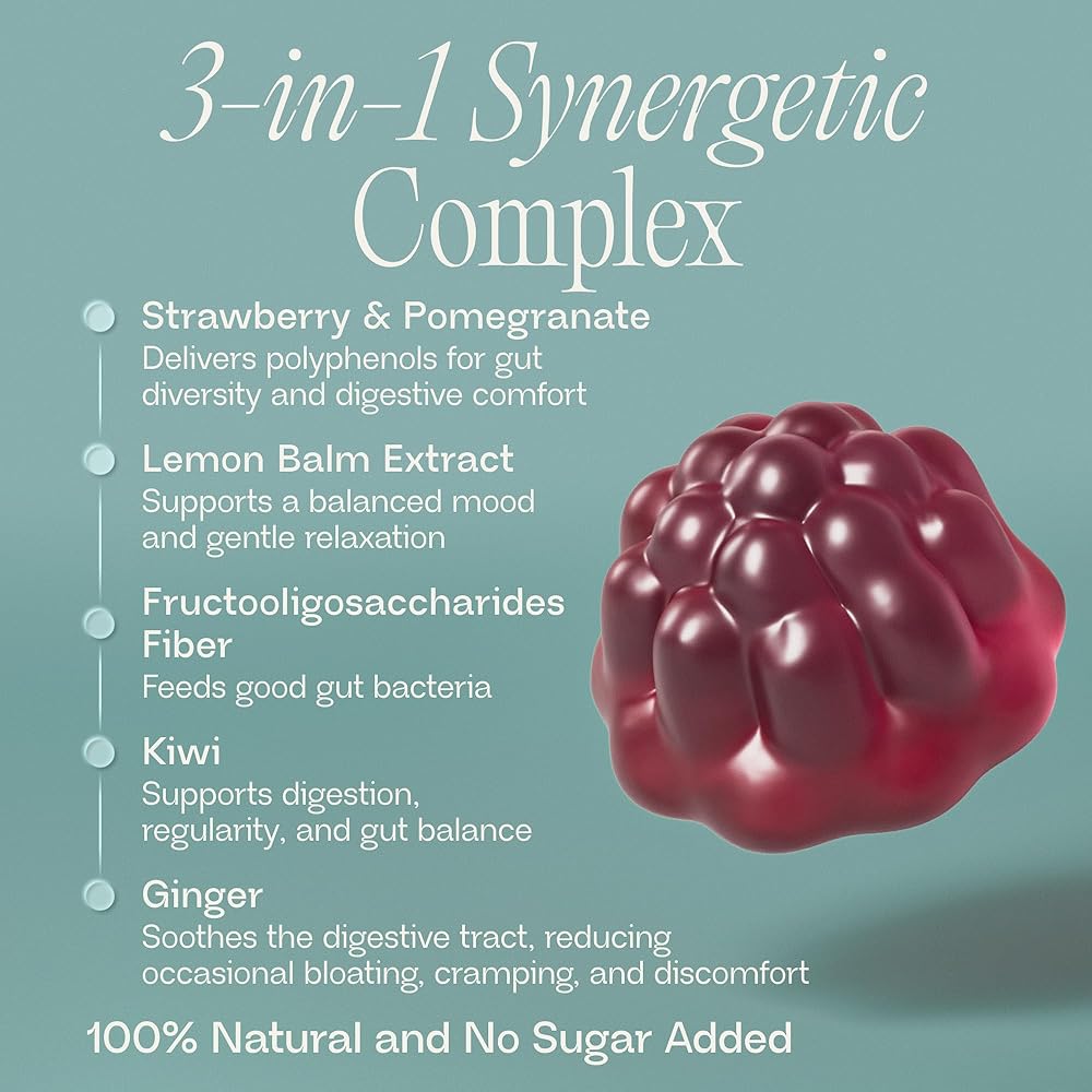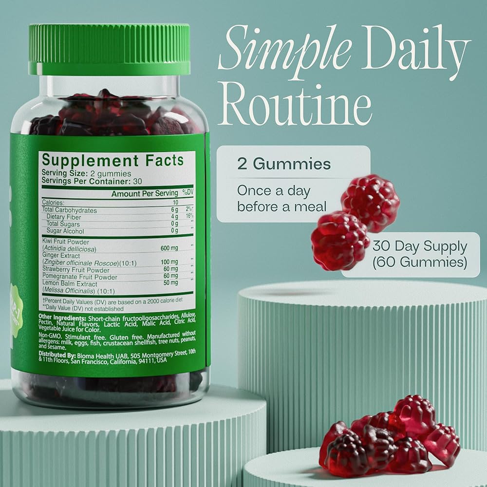 صحة الجهاز الهضمي الشاملة وتوازن الأمعاء - استمتع بعملية هضم أكثر سلاسة وتحسين انتظام مع مزيجنا التآزري من ألياف الفاكهة والمستخلصات النباتية. يساعد إنزيم الأكتينيدين الطبيعي الموجود في الكيوي على تكسير البروتين، بينما يهدئ الزنجبيل الانتفاخ والتشنج العرضي. يدعم مستخلص بلسم الليمون محور الأمعاء والدماغ، مما يساعد على تقليل الانزعاج الهضمي المرتبط بالتوتر من أجل صحة الجهاز الهضمي الكاملة.