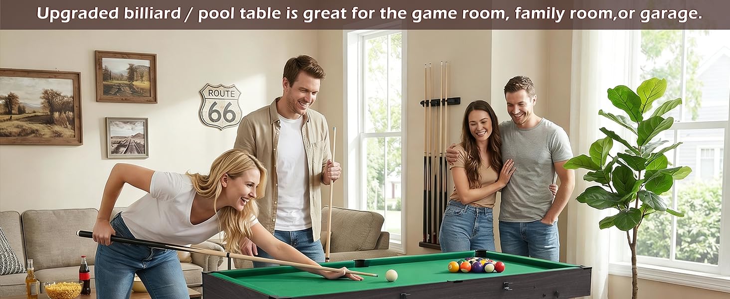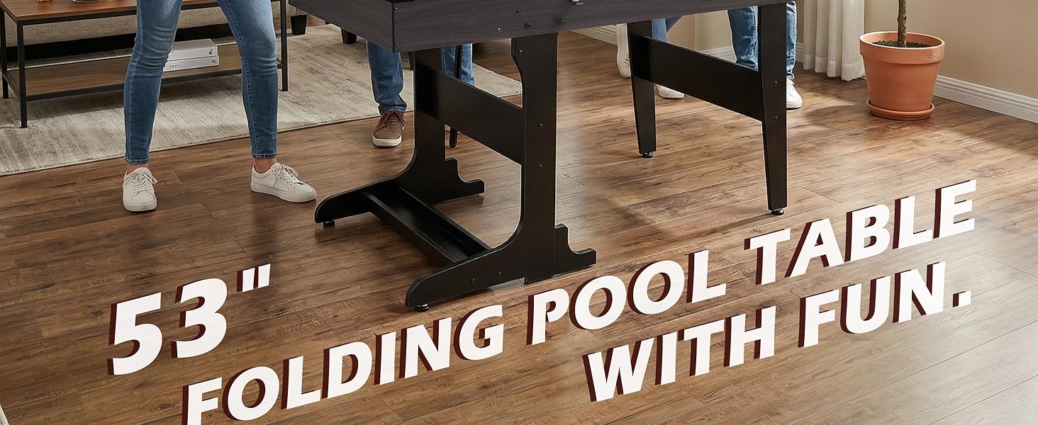Bring the excitement of a classic game room into your home with our 53-Inch Freestanding Folding Pool Table. Specifically designed for spaces where a full-sized table is not practical, this table offers the perfect balance of size, stability, and authentic gameplay.
